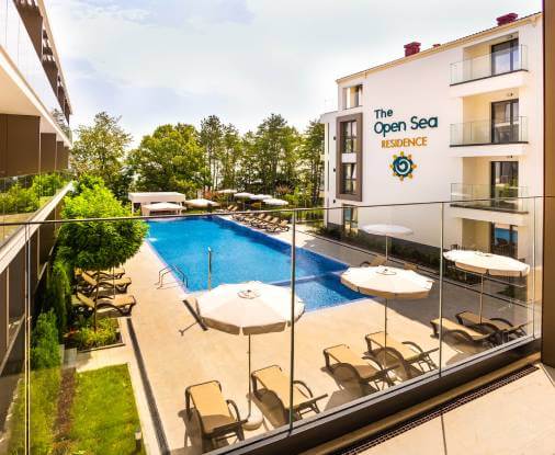 Nestled between the picturesque towns of Byala and Obzor, this exceptional residence offers a tranquil retreat surrounded by pine forests and stunning sea views, just 3 minutes from the vibrant city center. Residents enjoy access to all the amenities of a top-notch holiday complex. Step outside your apartment, unwind by the pool, or savor a refreshing drink at the poolside bar. A scenic walk down the steps through the lush pine-clad cliffs leads you to a pristine sandy beach, exclusive to the residents and guests of The Open Sea Residence, complete with complimentary sunbeds and umbrellas.
