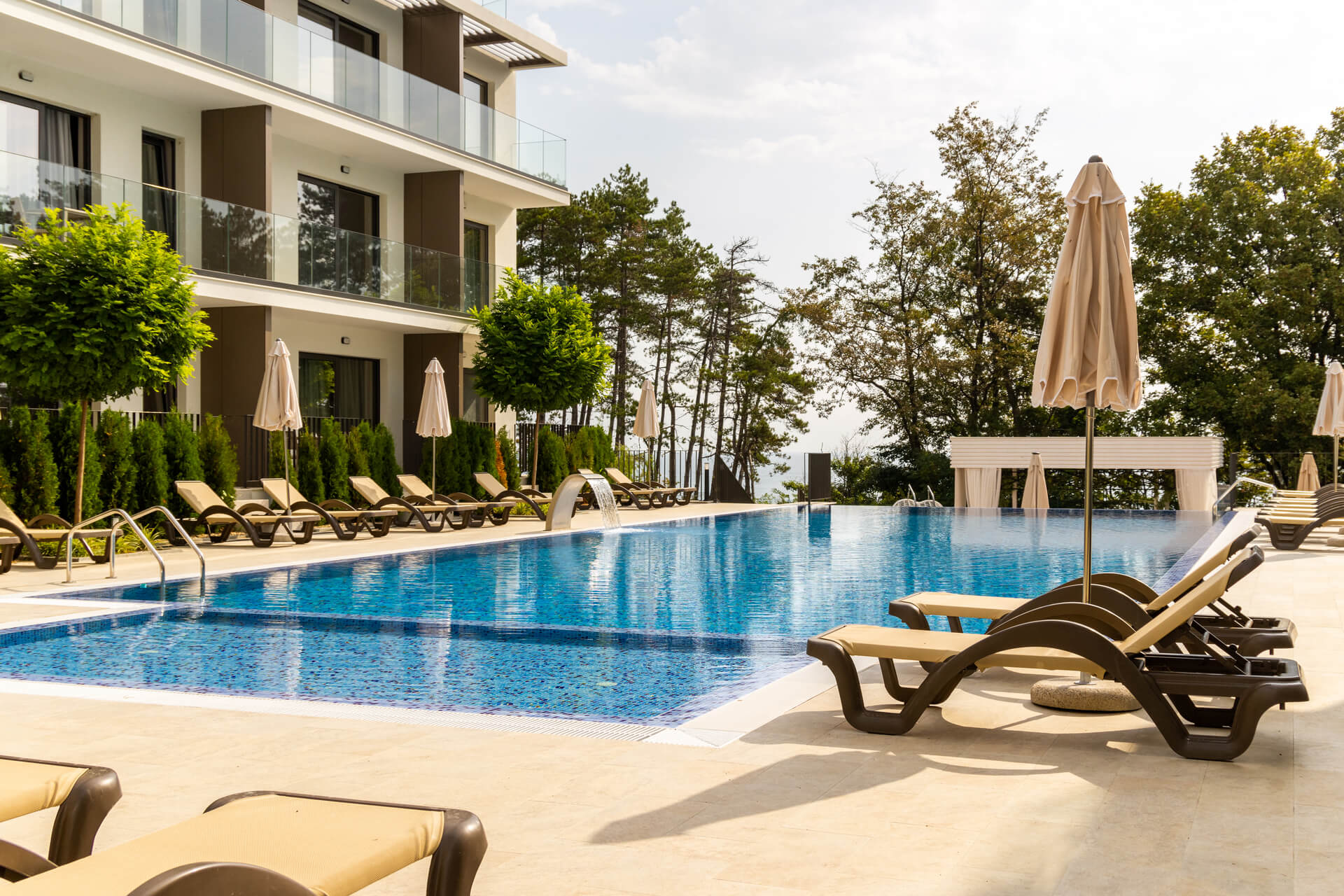 Situated between Byala and Obzor, The Open Sea Residence is nestled in a stunning natural area, surrounded by pine trees and the sea, just 3 minutes from the city center. You’ll have access to the full range of amenities expected in a high-end holiday complex. Step outside your apartment to relax by the pool or enjoy a refreshing cocktail at the outdoor bar. A short walk down the scenic path through the pine-clad cliffs leads to a wide sandy beach, complete with complimentary sunbeds and umbrellas, exclusively for residents and guests of The Open Sea Residence.