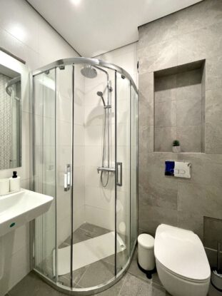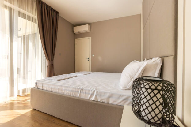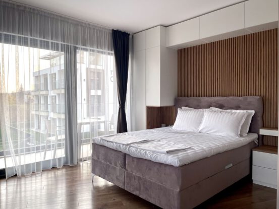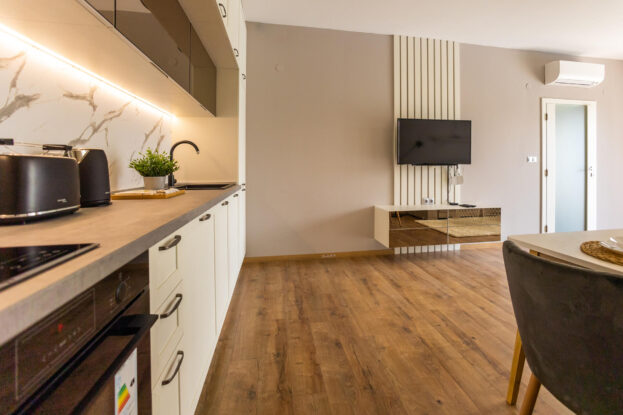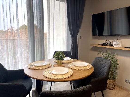 The Open Sea Residence presents three-room apartments with excellent space optimization. They consist of two separate bedrooms, a living room, a kitchenette, two separate bathrooms and toilet, and two open terraces overlooking the hotel’s garden and pool. They are especially suitable for large families with kids.